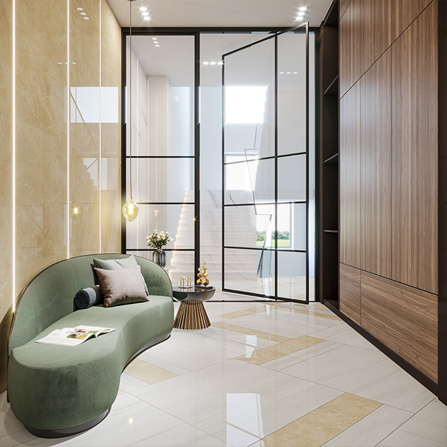 老佛爷卡尔拉格斐, 用敝升的想象力和创造力重新定义了时尚。 卡尔米黄的创意就是来源于他的时尚捕捉灵感, 定义了瓷砖的纹理和质感。 适合现代简约、古典奢华等风格。